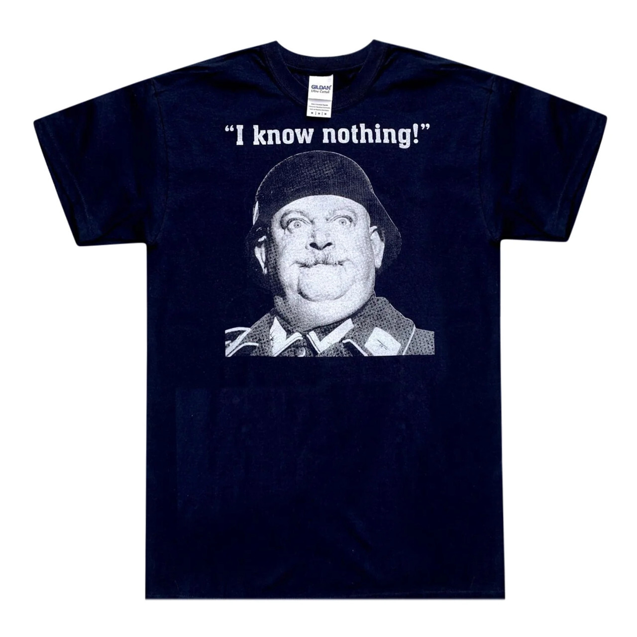 Hogans Heroes Shirt – I Know Nothing! Available in Size S, M, L, XL, 2XL, 3XL
